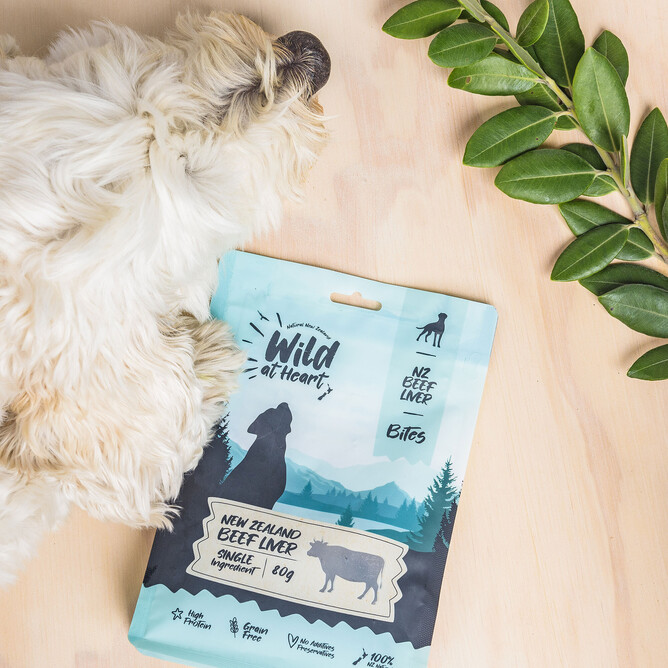 The Wild at Heart dog treat range comes in three delicious and natural flavours: Lamb Lung Bites, Beef Liver Bites, and Lamb and Cheese Bites.